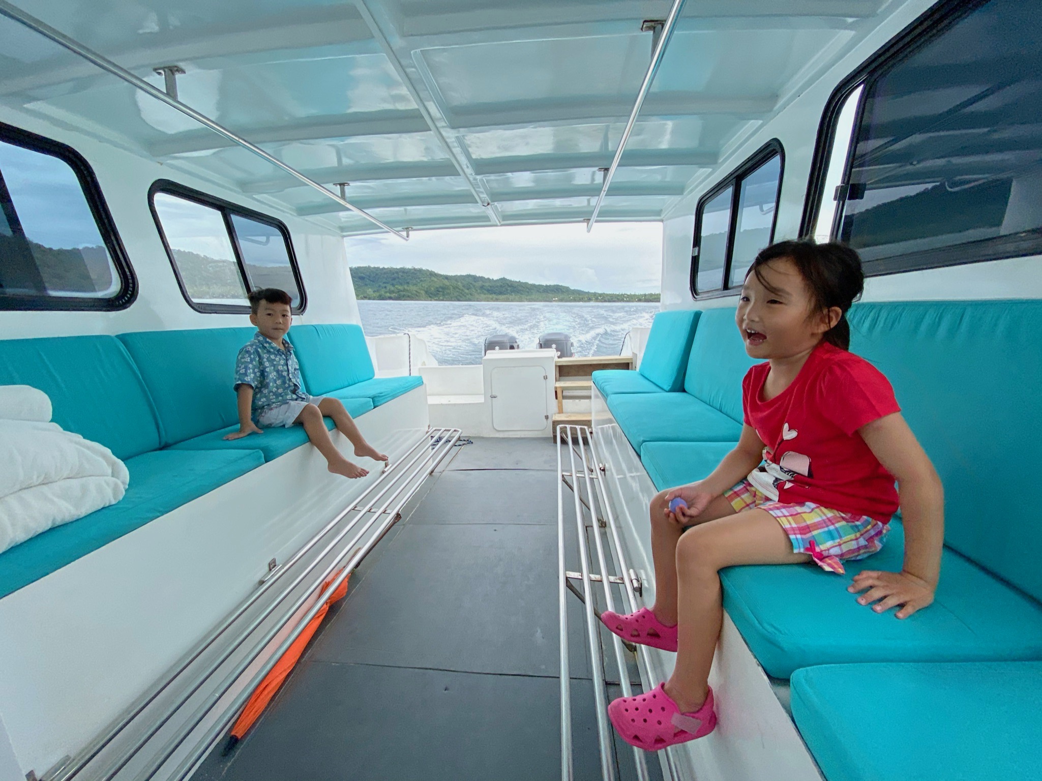 The boat is massive and can easily fit the whole family. In fact, Chloe’s brother and sister each had a row to themselves on the stern of the boat.