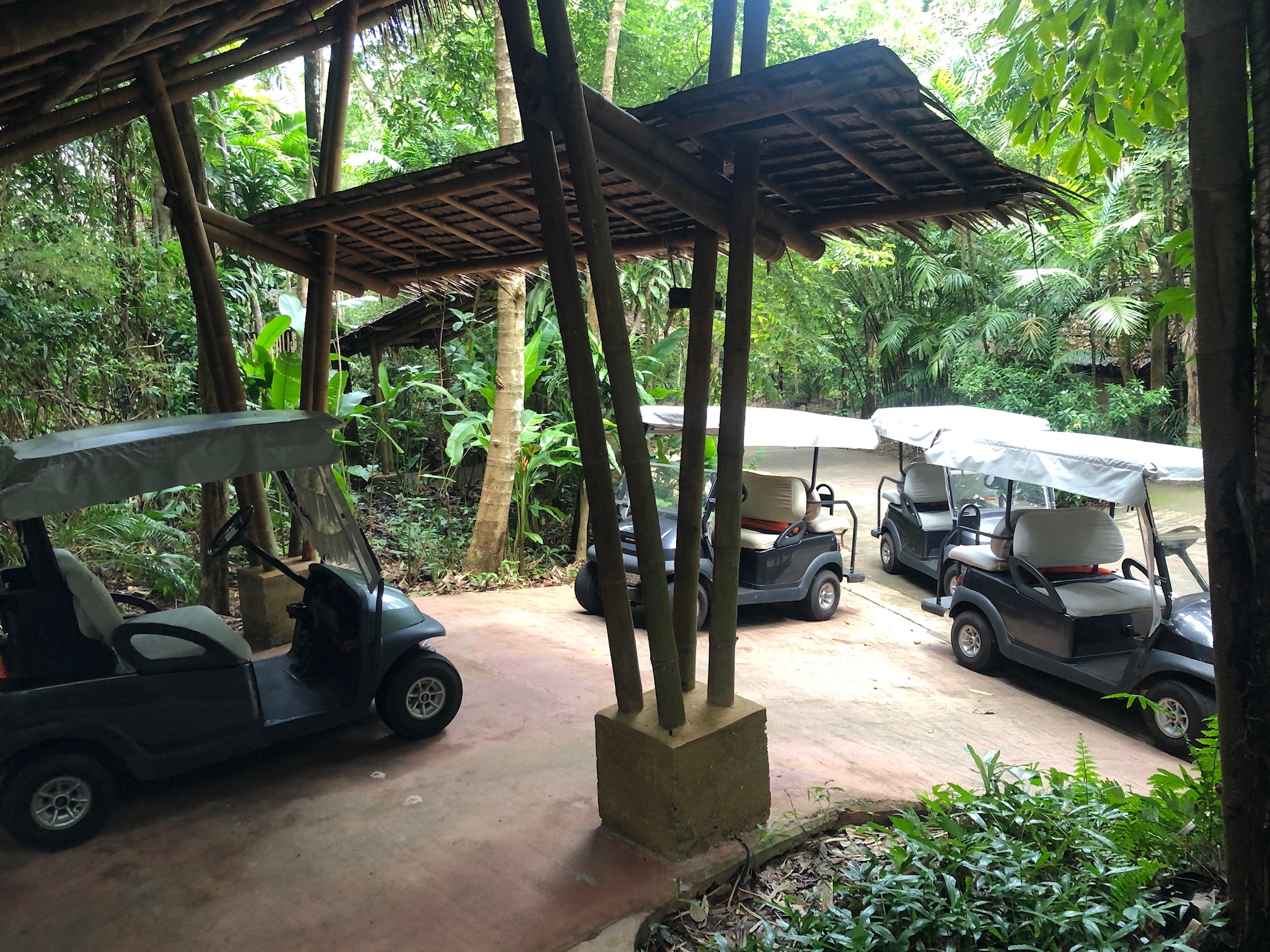 1. At anytime during the stay, you can request your butler to setup room service for your family in your villa. When that happens, our buggy golf cart parking situation (for a family of 12) looks like this outside 😀