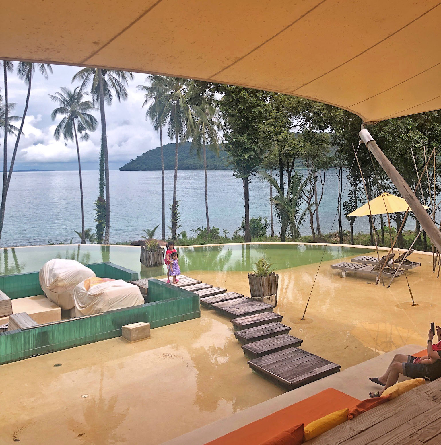 Chloe and her brothers/sisters run to the main pool while the family checks in to our villas.