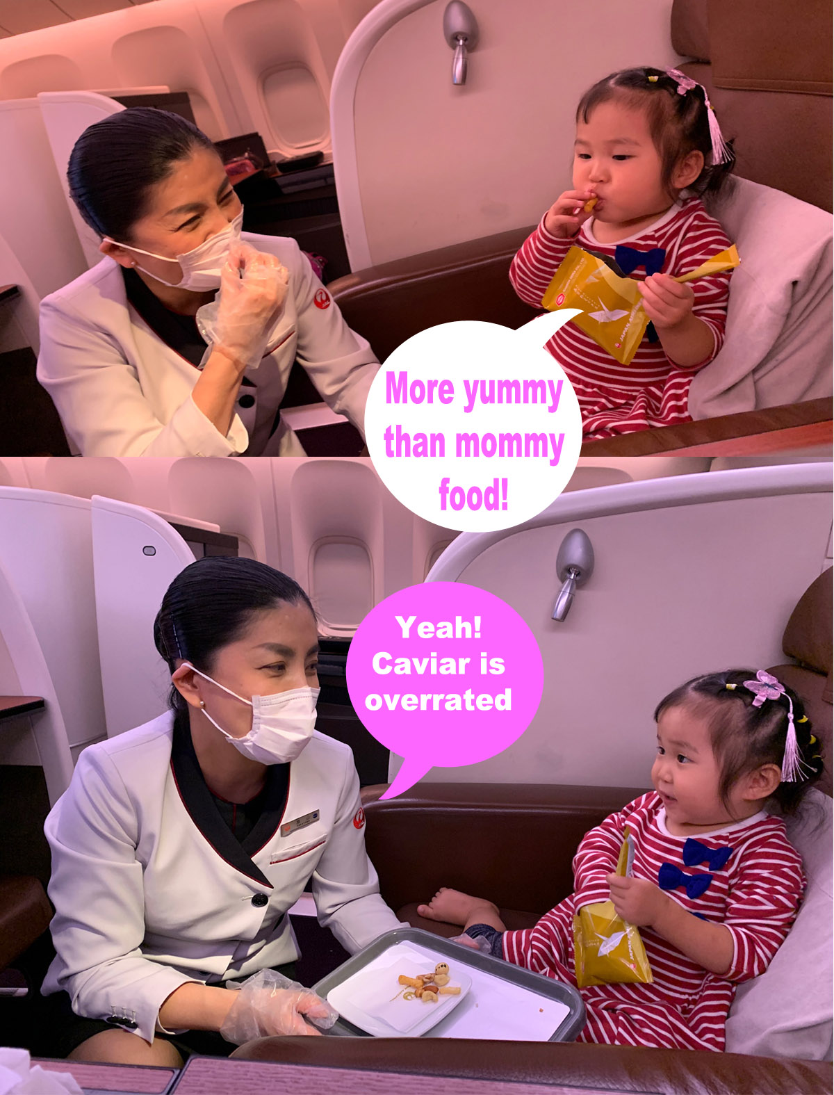 Mommy said Tokyo is “closed”, so we can’t go into this city this time…. but there’s a lot of yummy foods in the Japan Airlines Sakura First Class lounge! It felt like a private restaurant… only we were there!