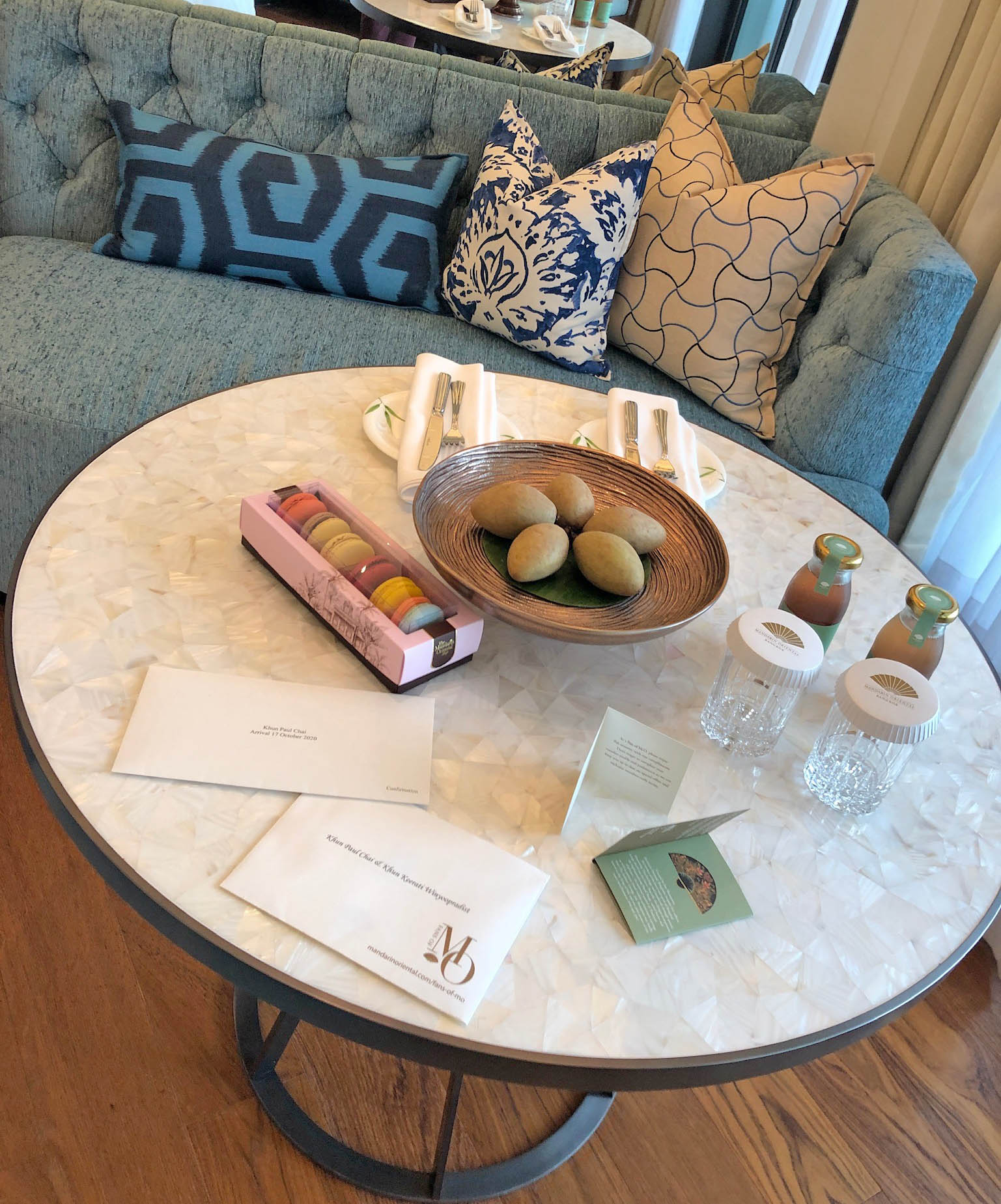 The welcome amenity provided included Thai herbal tea and Macarons from the Mandarin shop downstairs.
