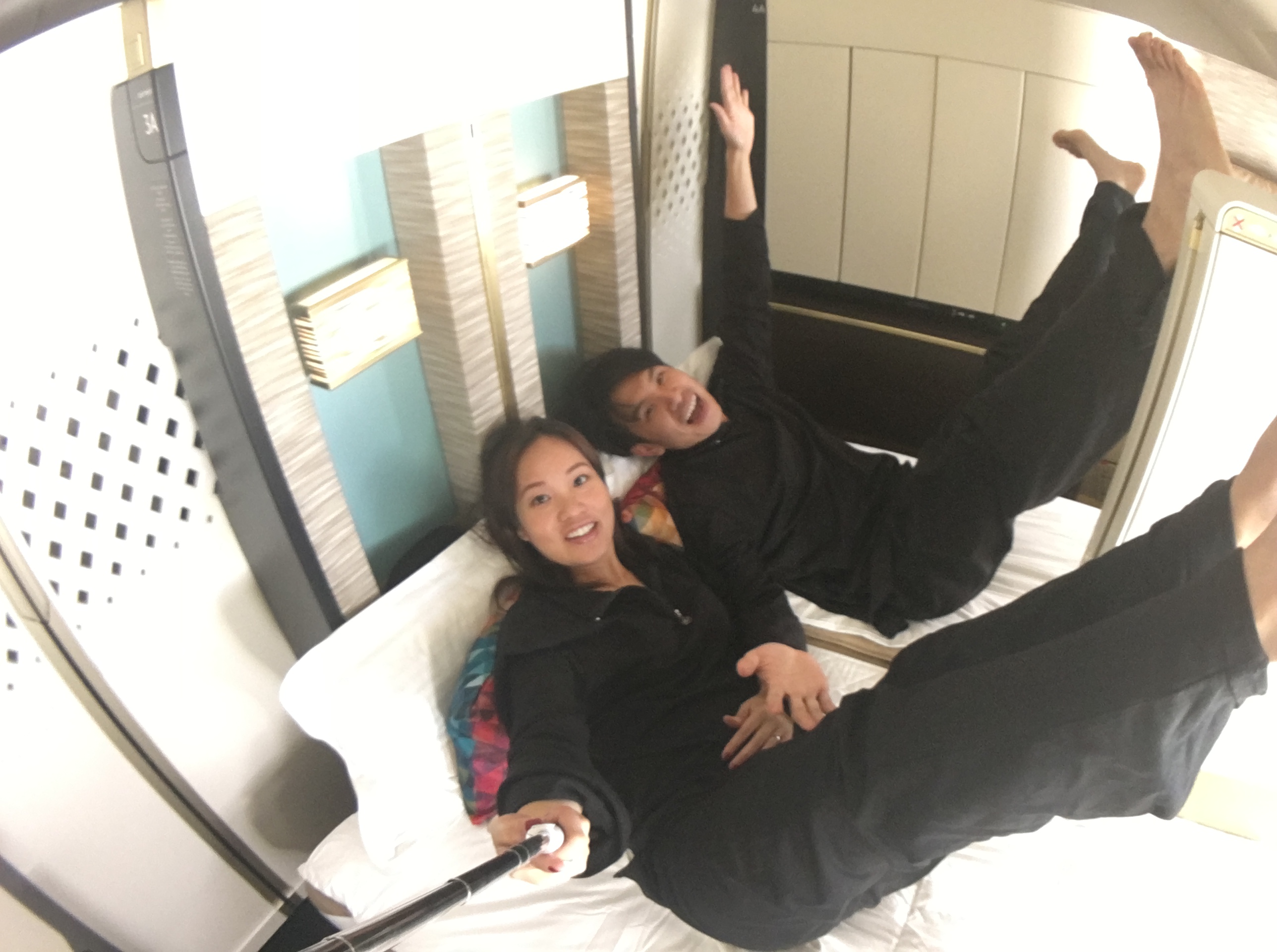 This suite is bigger than our old New York apartment bedroom. No joke. It’s a bedroom flying in the sky.