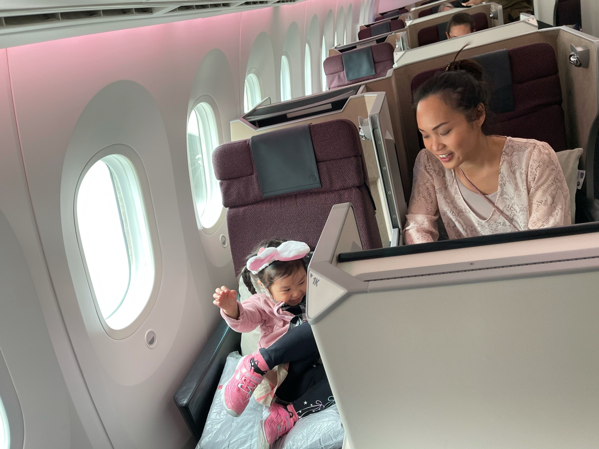 She likes it mainly because there is a little nook that feels like a mini “play area” that goes directly to the aisle. For a toddler, she gets entertained by this private corner. For a parent, it’s convenient since the kid is so accessible by the connecting aisle/window suite.