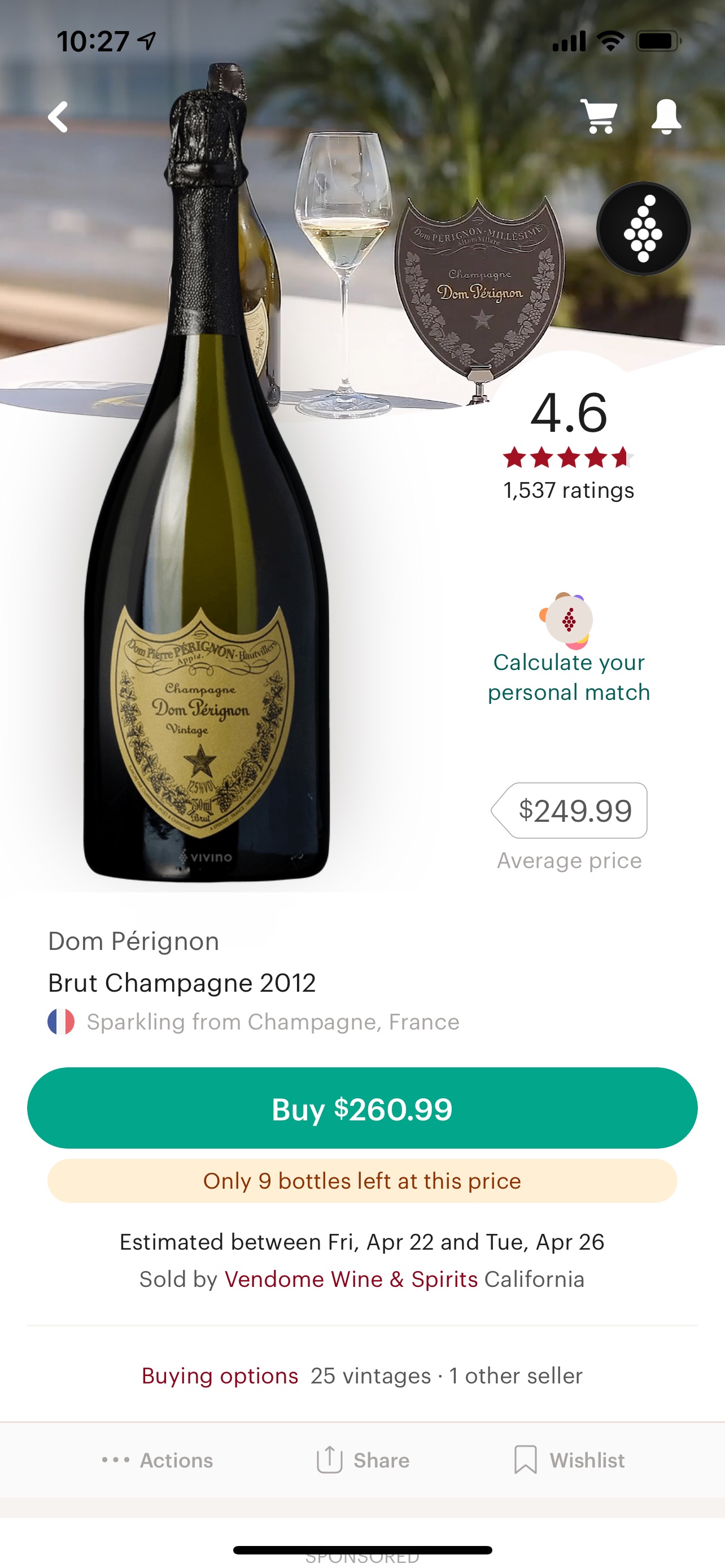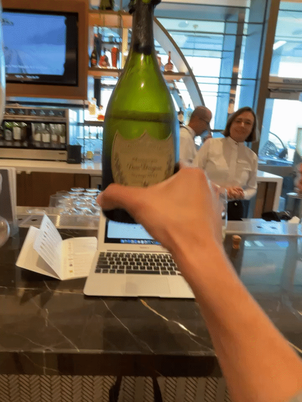 To mark this special occasion, I decided to try something new. In Delta SkyClubs, there’s a “Raise the Bar” option where you can redeem SkyMiles for fun drinks at the bar. One option that caught my eye is the bottle of Dom Pérignon. It costs below retail price!