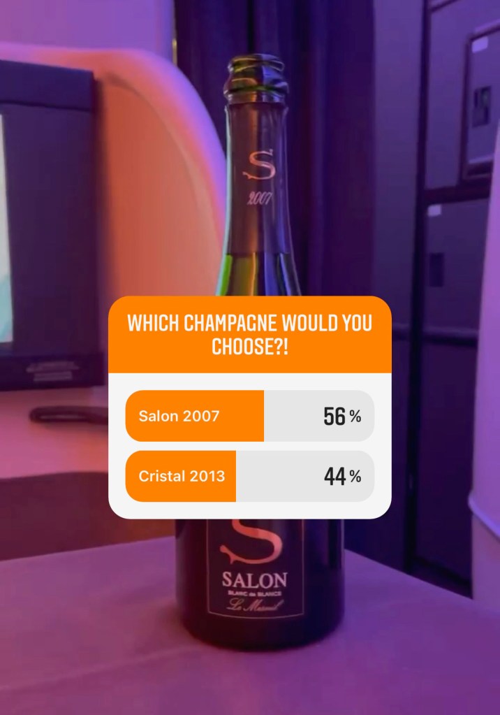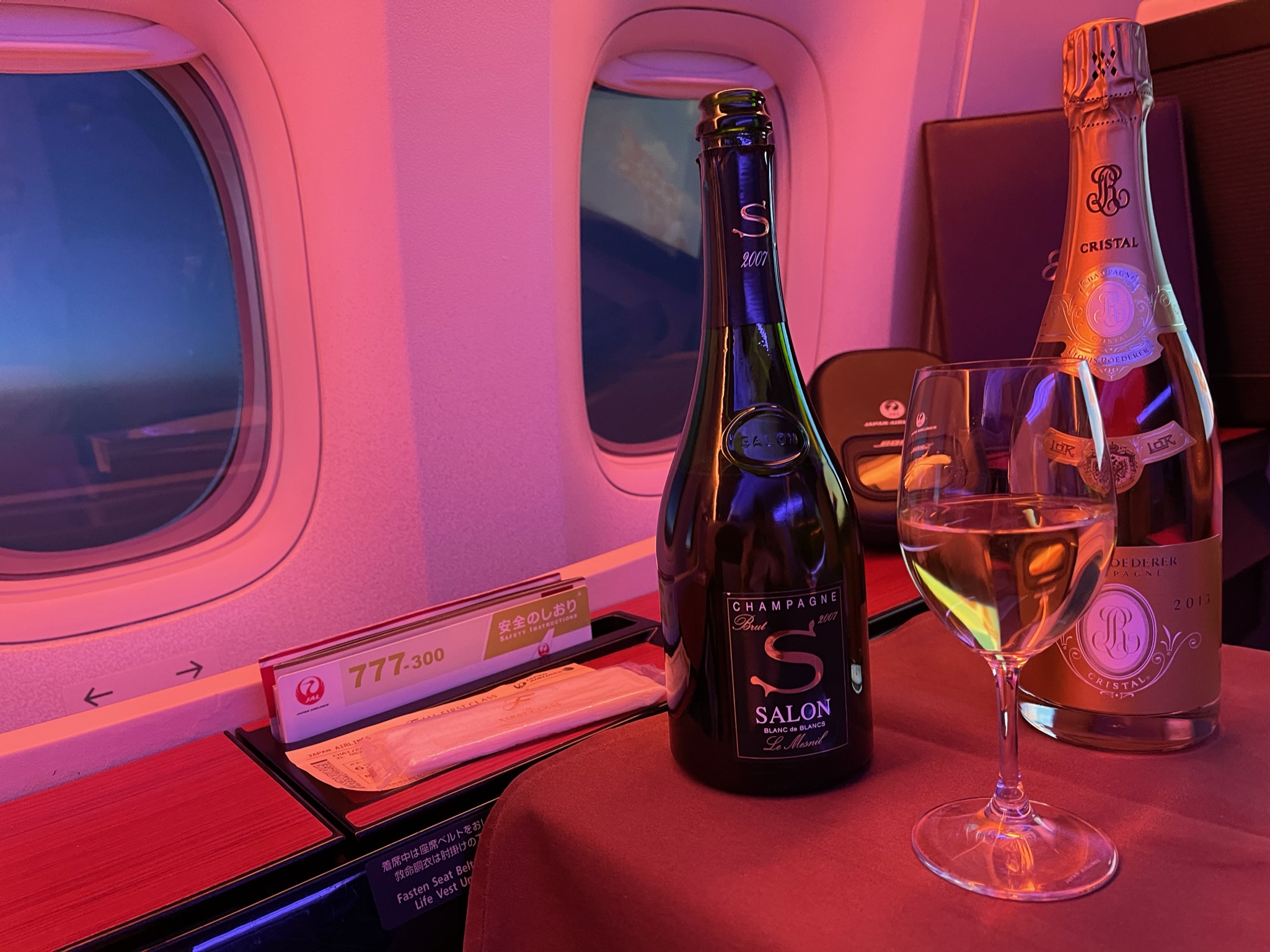 For us personally, we really wanted the legendary Salon, so we purposely booked an outbound flight originating from Japan. Luckily, there was an extra bottle of Cristal on this flight, so we filmed it side by side for kicks.