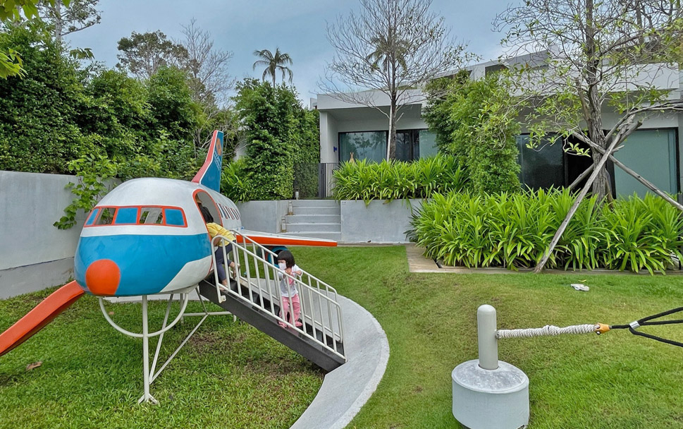 This property is very family-friendly and has a playground area featuring a mini-airplane.