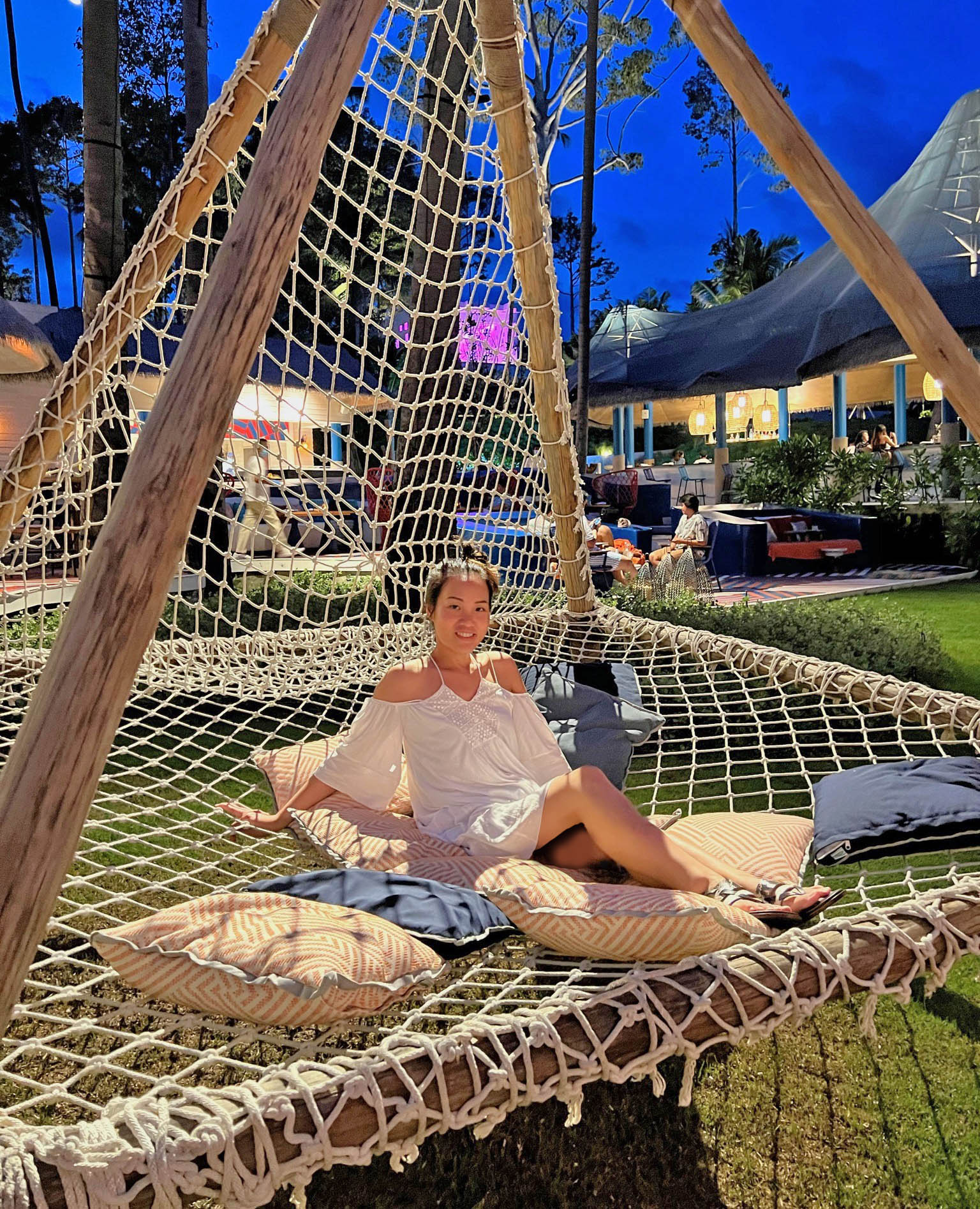 At night, there’s a cool oversized tent/hammock area to lounge in. This thing feels like it came straight out from a “Bachelor in Paradise” show where couples come here to cuddle/talk after a romantic stroll along the beach.