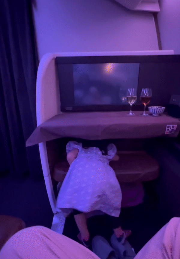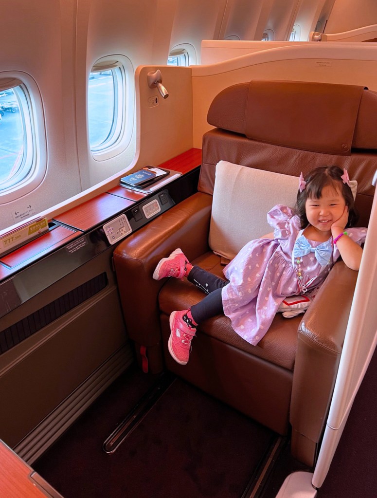 Even with points and miles, it surprises people when they see kids like Chloe fly premium cabins especially for 15+ hr flights. Instead of paying double the miles for two passengers… it now costs triple the miles for the family 😭 we totally get it — it’s an extra +1 cost