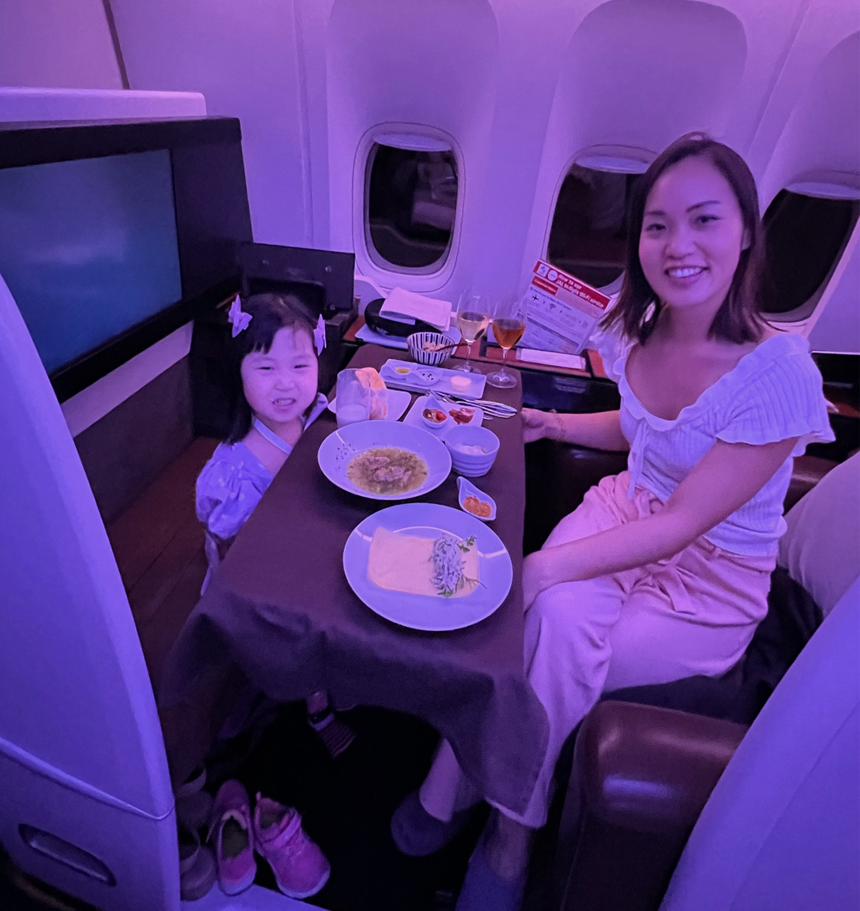 It takes a village to raise a child and flying internationally sure ups the ante. Much to our appreciation, flight attendants proactively help take care of families in First Class, which makes the journey a much more enjoyable experience.