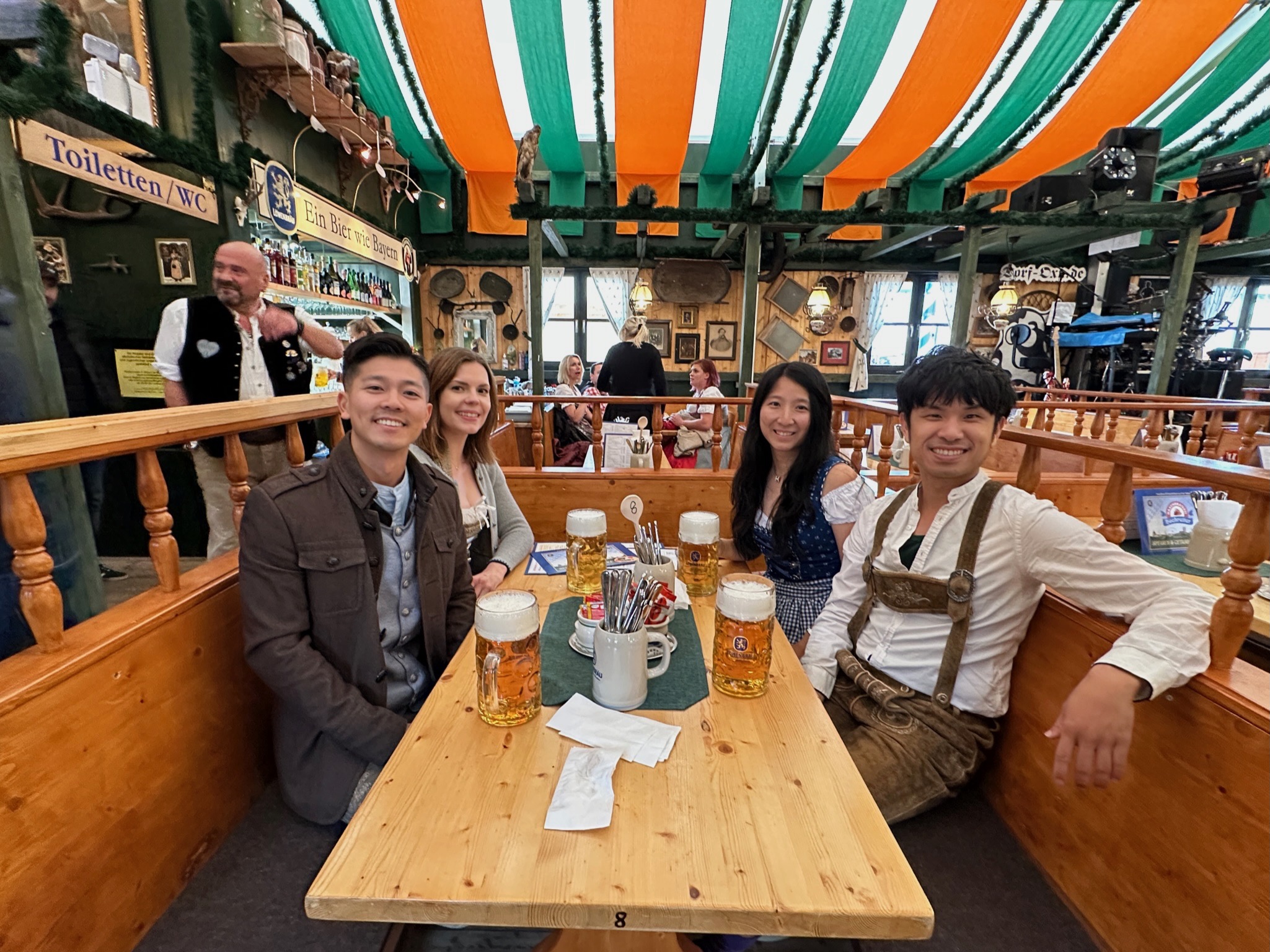 Thankfully, our German local friends were able to secure us a table reservation which made our tent(s) experience extremely enjoyable! Our reservation was smack right center of the tent in the hustle & bustle of festivities.