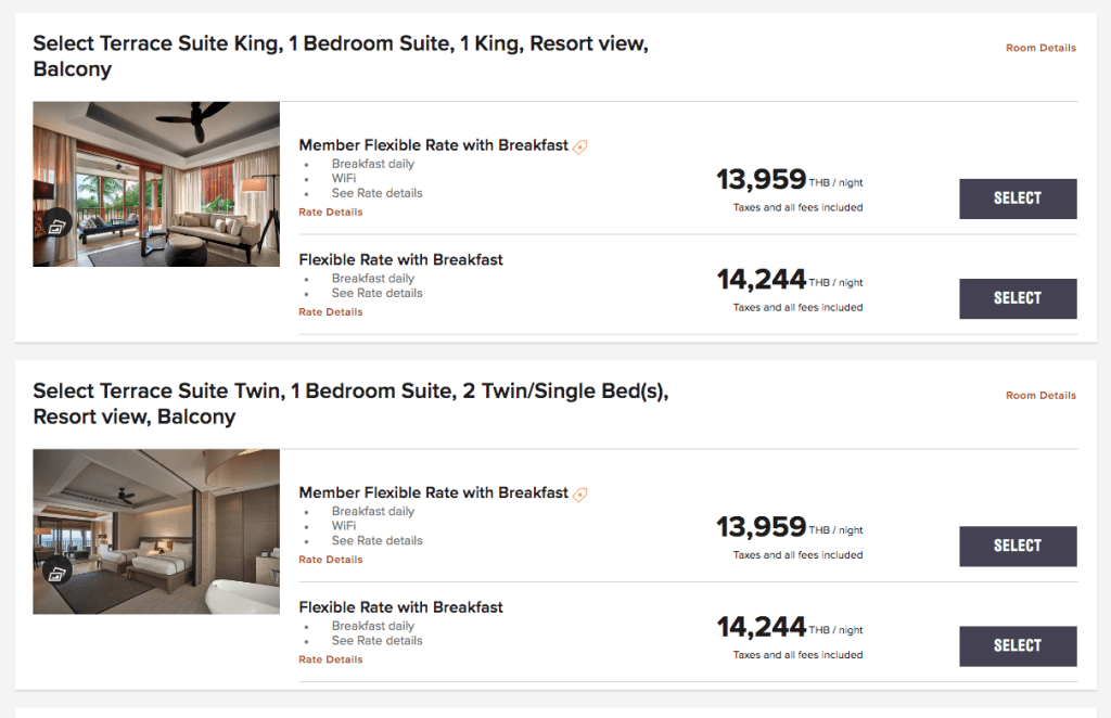 After racking all those points, you can spend 70,000 points – 130,000 points here depending on what type of rooms you book.