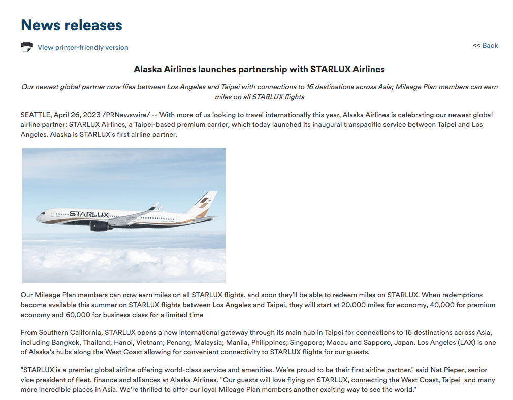 Effective immediately, Starlux today has partnered with Alaska Airlines in earning elite miles with this specific OneWorld carrier. On top of that starting this summer, redemptions will also become available starting at 20,000 miles for economy, 40,000 for premium economy, and 60,000 for business class.