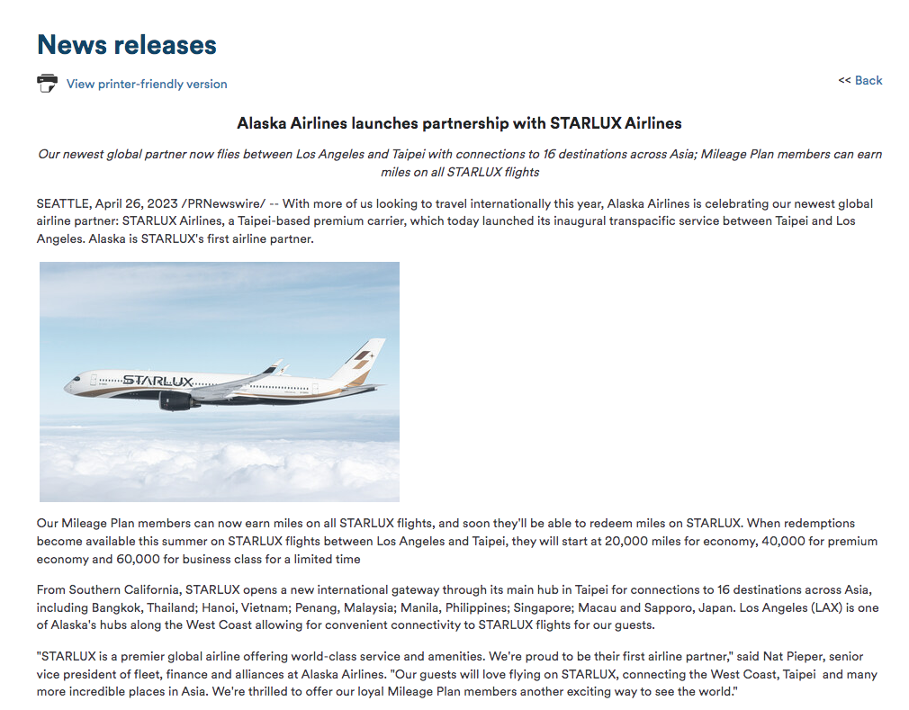 Effective immediately, Starlux today has partnered with Alaska Airlines in earning elite miles with this specific OneWorld carrier. On top of that starting this summer, redemptions will also become available starting at 20,000 miles for economy, 40,000 for premium economy, and 60,000 for business class.