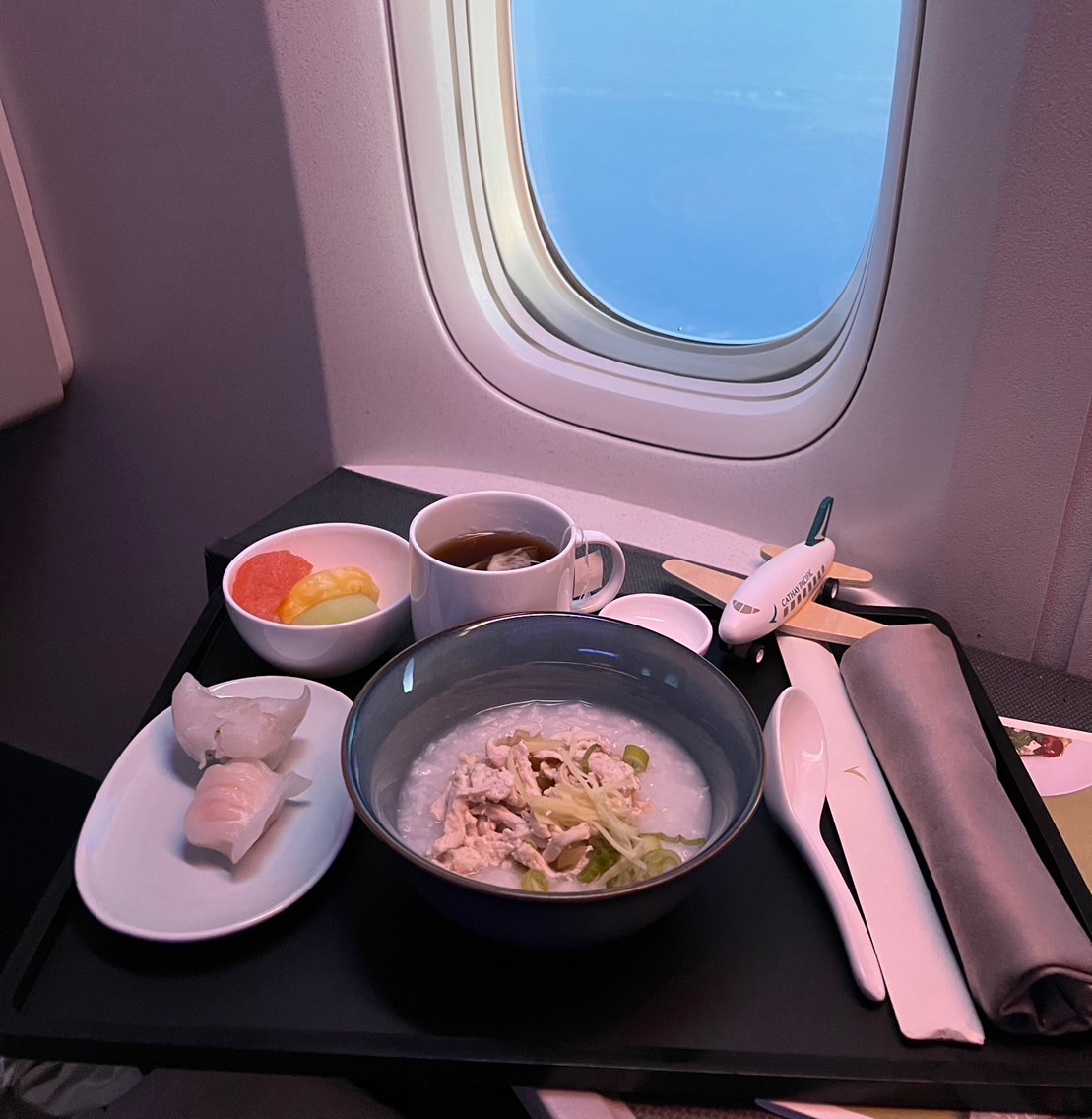 Cathay Pacific crew gifted Chloe a cool collectible CX plane during breakfast.