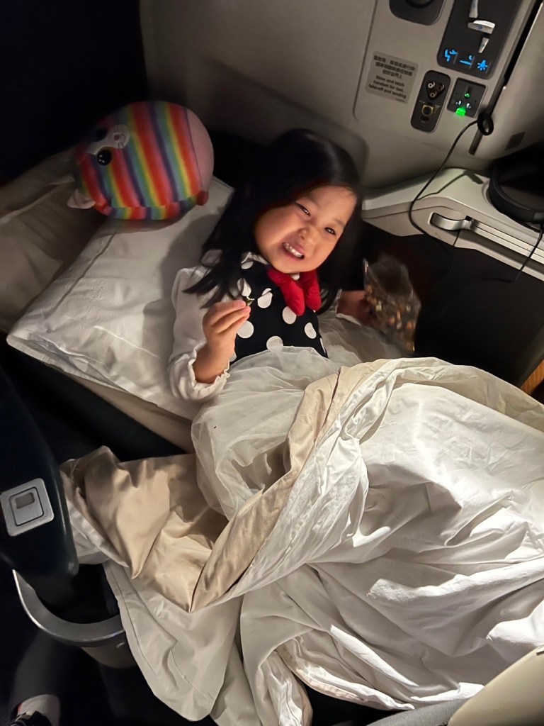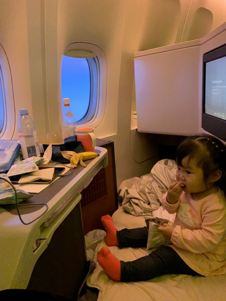 Before you know it… even yours truly Chloe flew CX Business right before she turned 2 years old. At the time, she was still categorized as “lap infant” so under Cathay Pacific rules we only had to pay 25% of the adult revenue fare.