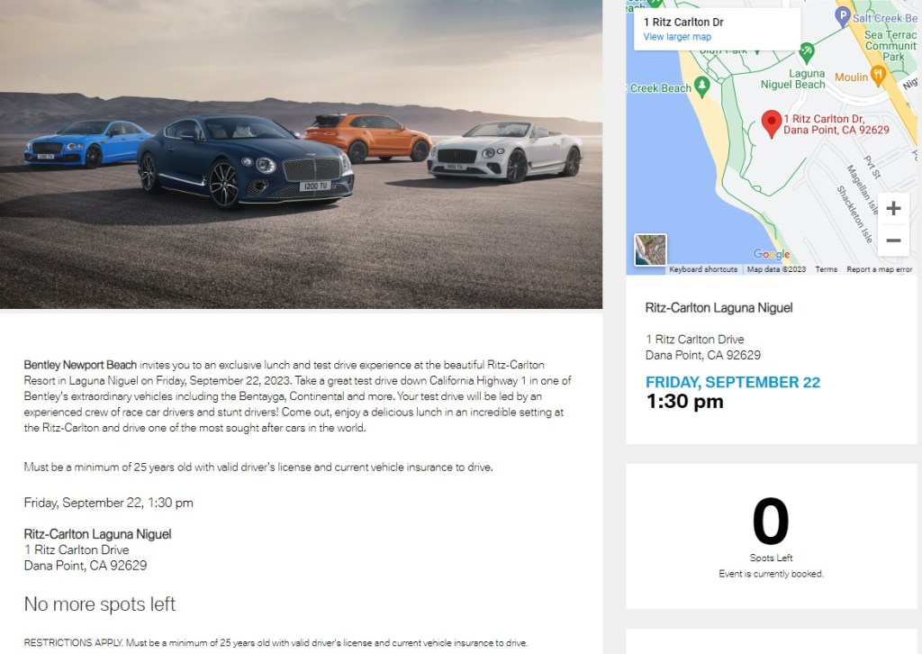Hugging the Pacific Coast, Bentley Motors generously hosted a fancy lunch at the Ritz Carlton Laguna Niguel.