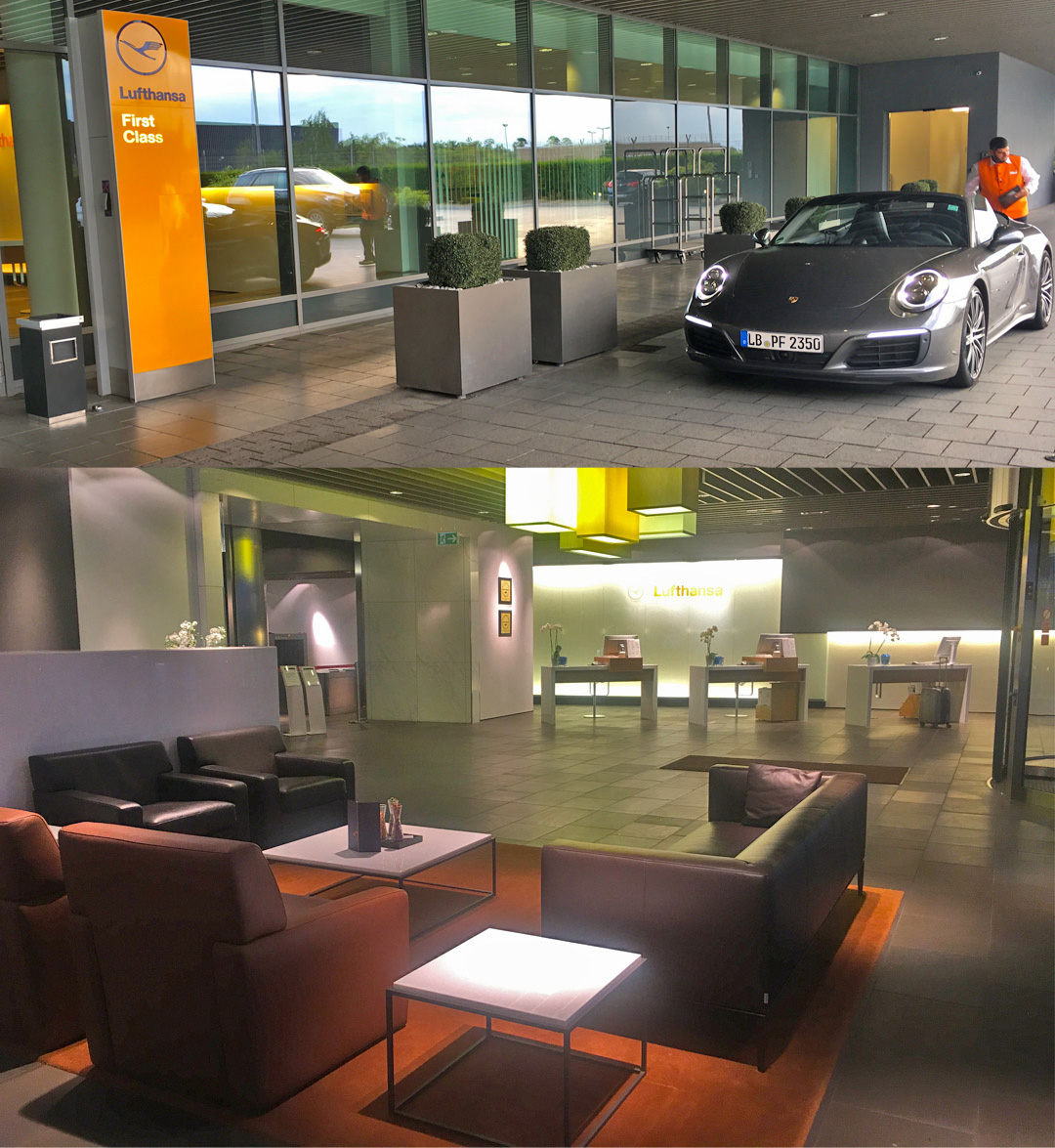 After dropping off the Lufthansa Porsche in their valet area, there’s an expedited check-in lounge with no lines. Just you.