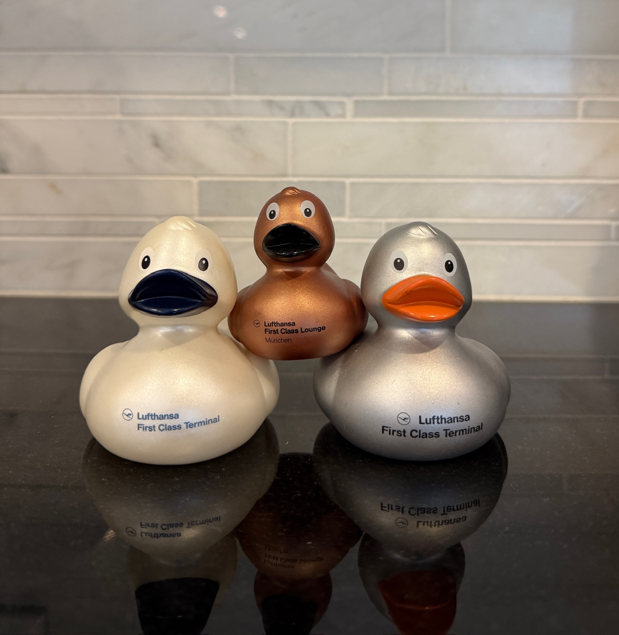 There are few collectible items in the world I get excited about, but when it comes to travel the Lufthansa First Class rubber ducks are near the top. We just attended a family wedding in Europe and my brother was able to snag this experience for 3 passengers.