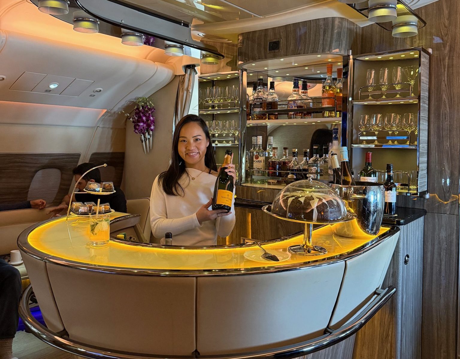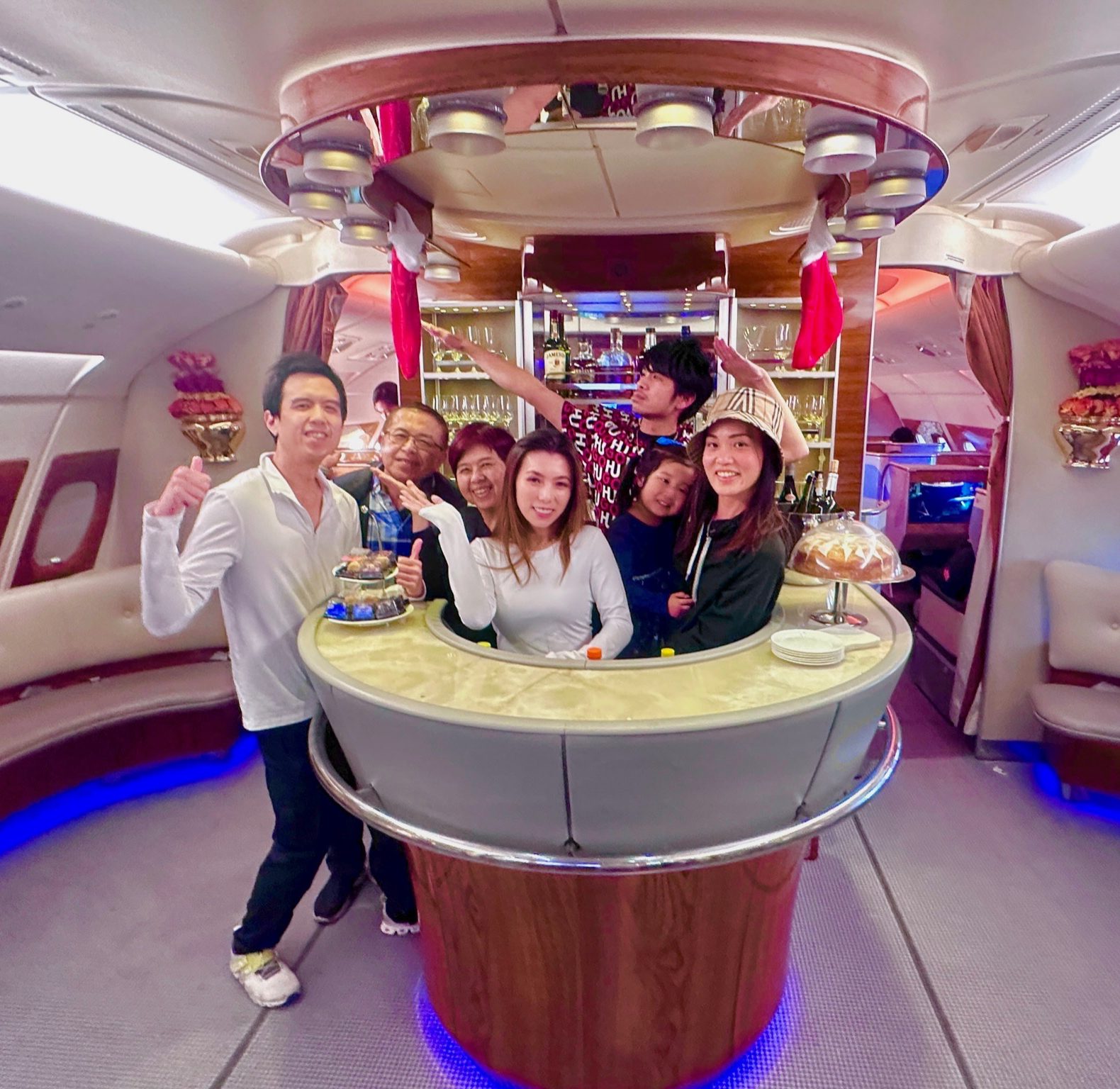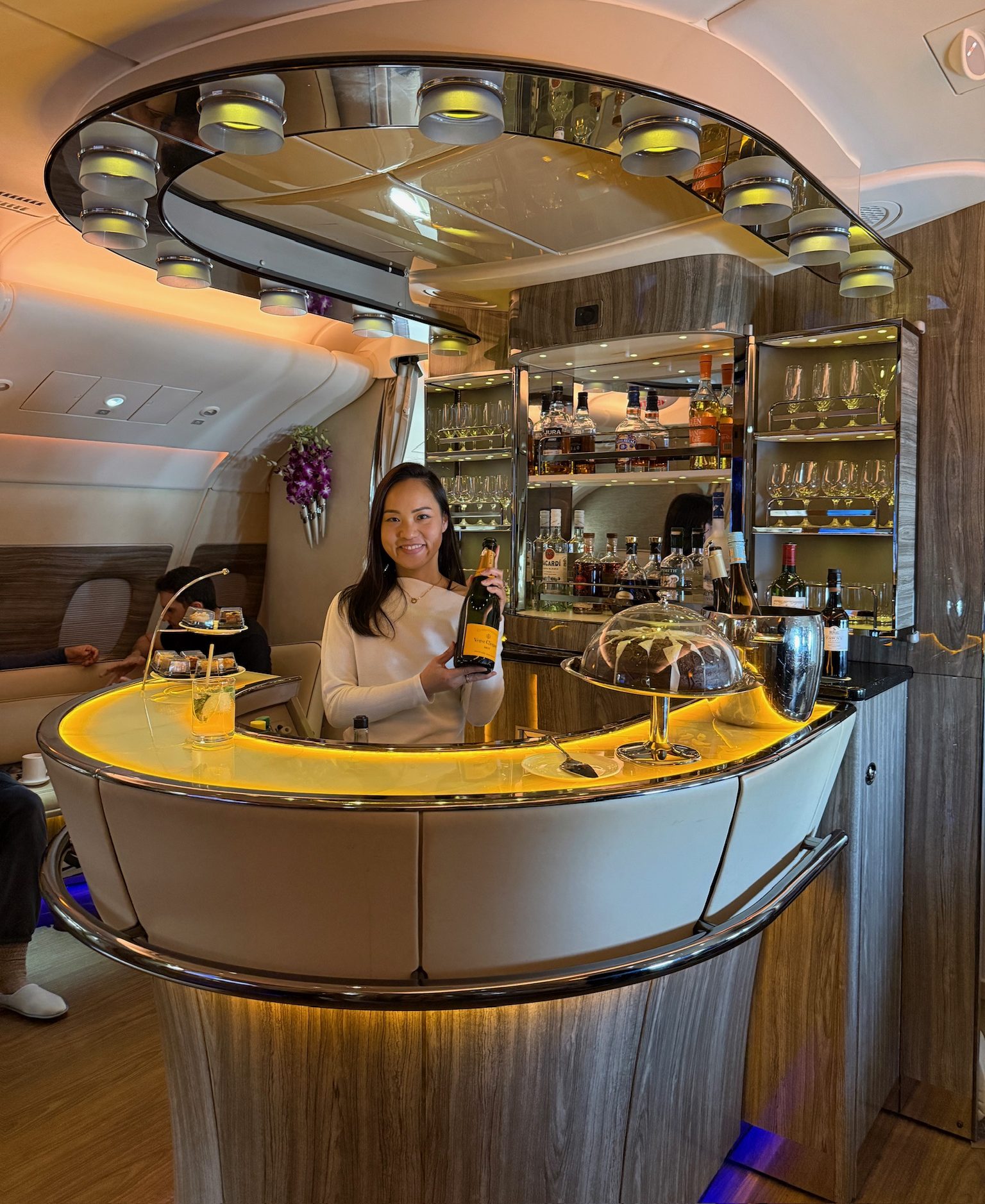 Nothing screams more of an occasion than flying fancy on the Emirates A380. The upper deck sky bar is a party scene straight out of a movie.